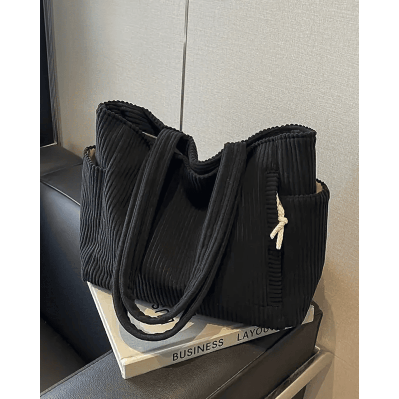 Løft dit hverdagslook med Tilda™, en ribbet tote taske, der blander elegant design med praktisk anvendelighed i hverdagen. Med en stilfuld snøredetalje tilføjer denne tote taske et moderne præg til ethvert tøj. Dens rummelige interiør holder dine essentielle ting organiseret, hvilket gør den til den perfekte ledsager til travle morgener, arbejdsdage eller afslappede udflugter.